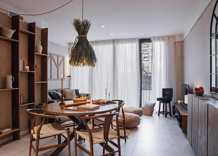Das 71 m² große Apartment Pedrera - 2 Bedrooms In Eixample Esquerra Barcelona liegt im Bezirk Raval von Barcelona, 20 Fußminuten vom Barri Gòtic entfernt.